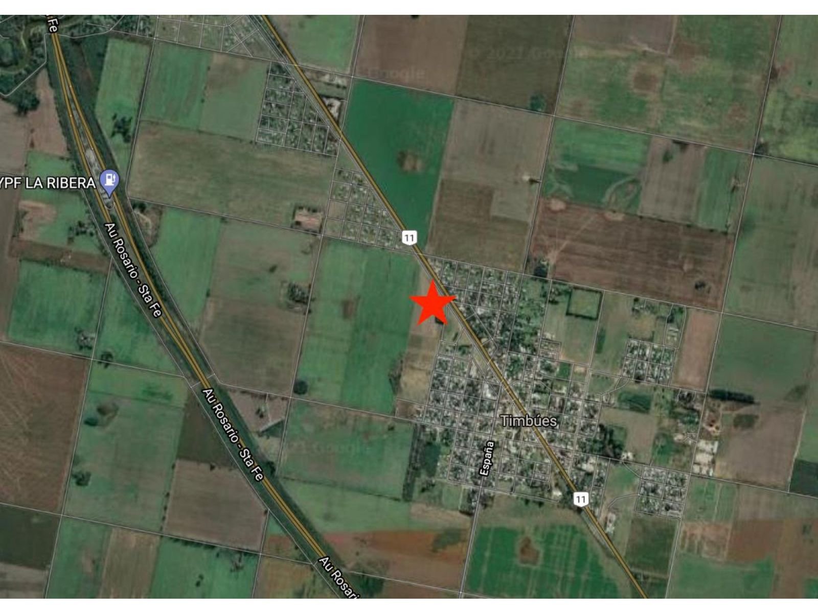 Ubicadas en la intersección de Ruta Nacional 11 (Av. San Martín) y calle Maiztegui, en la localidad de Timbúes, provincia de Santa Fe.