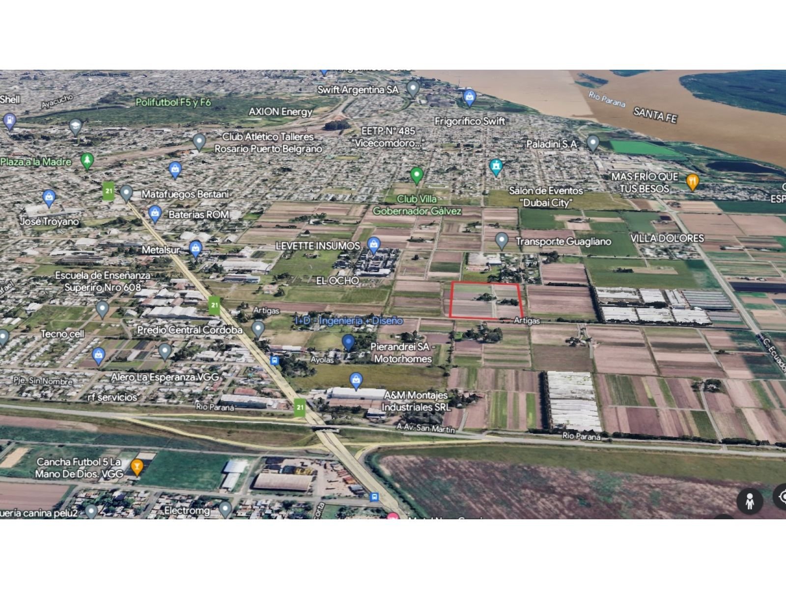 Se ofrece en venta una fracción de 4 hectáreas ubicada en una ubicación estratégica sobre la calle Artigas, en Villa Gobernador Gálvez. Esta propiedad se encuentra a solo unos metros de la Ruta Provincial N° 21, lo que la convierte en una opción ideal para una variedad de proyectos industriales, comerciales o de desarrollo inmobiliario.