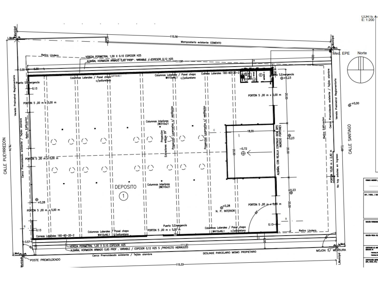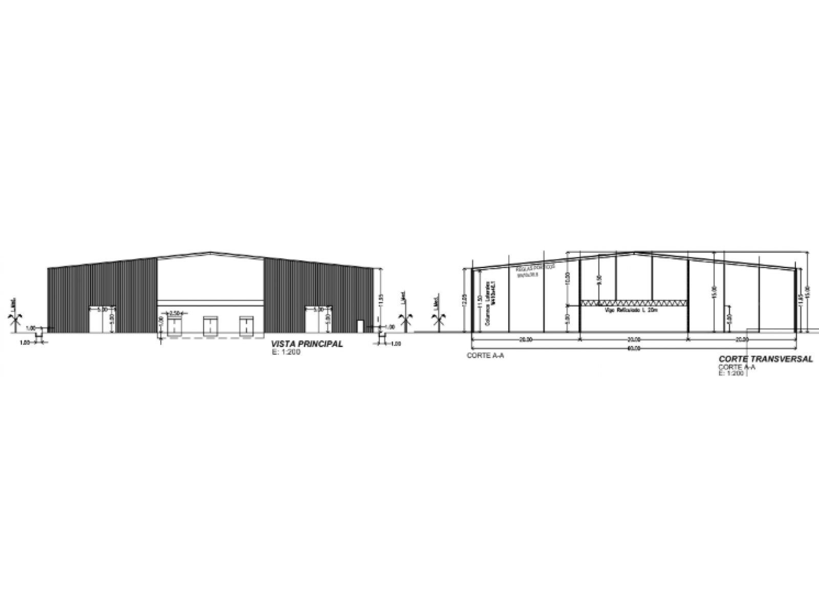 -Dos portones de ingreso de 5m de alto por 5m de ancho