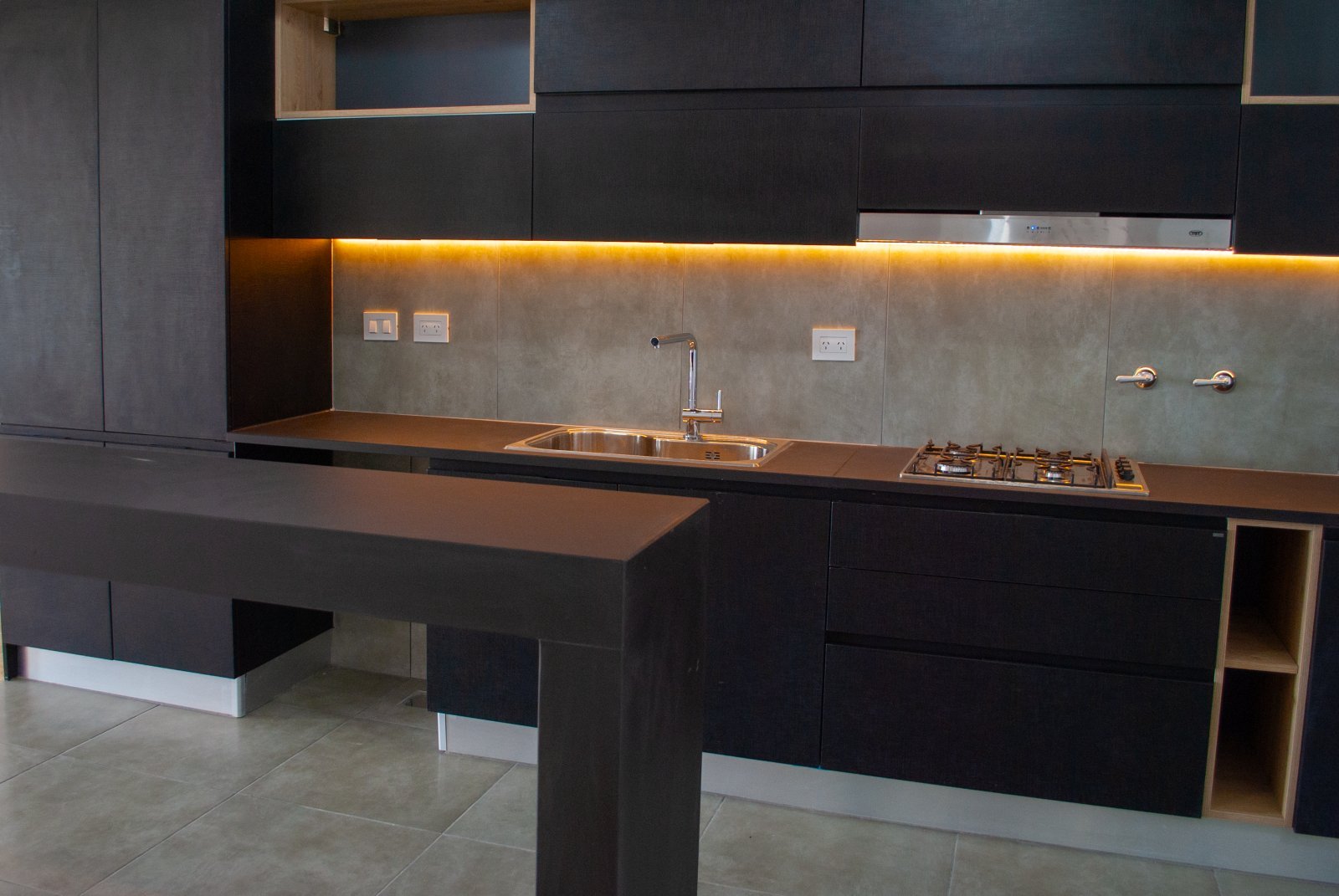 Cocina semi integrada, bajo un concepto abierto, con buena ventilacion