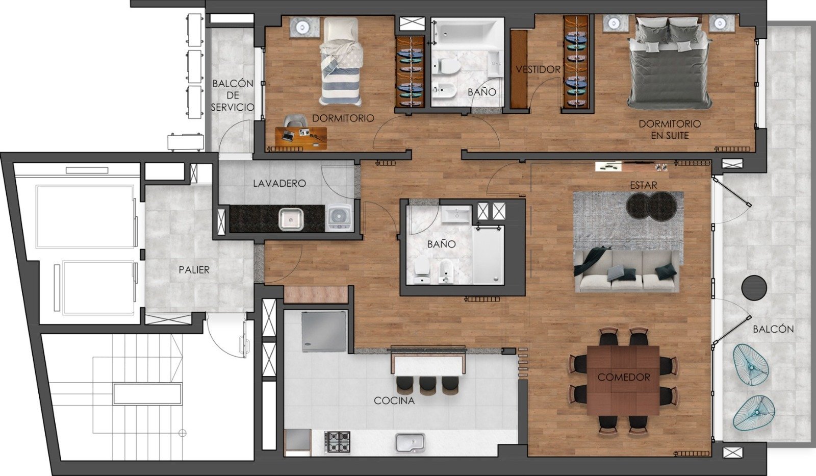 Dos baños completos. Lavedero independiente.