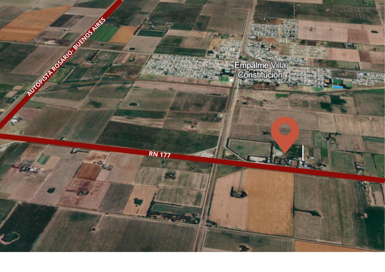 📍 Ubicación estratégica: Empalme Villa Constitución, sobre Ruta Nacional 177 y con conexión directa a la Autopista Rosario – Buenos Aires.