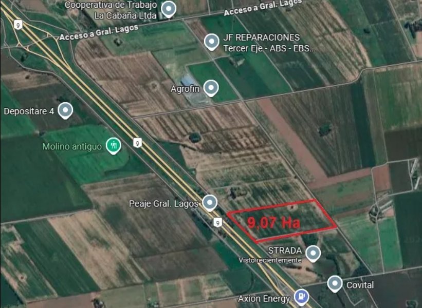 Oportunidad estratégica para industrias y desarrollos con visión. Este lote de 9,07 hectáreas ya cuenta con zonificación industrial por la Comuna de General Lagos, garantizando un marco claro para proyectar y crecer. Su ubicación privilegiada frente al peaje de la Autopista Rosario–Buenos Aires brinda una visibilidad excepcional y acceso inmediato, ideal para logística, centros de distribución o plantas productivas 🚛✨