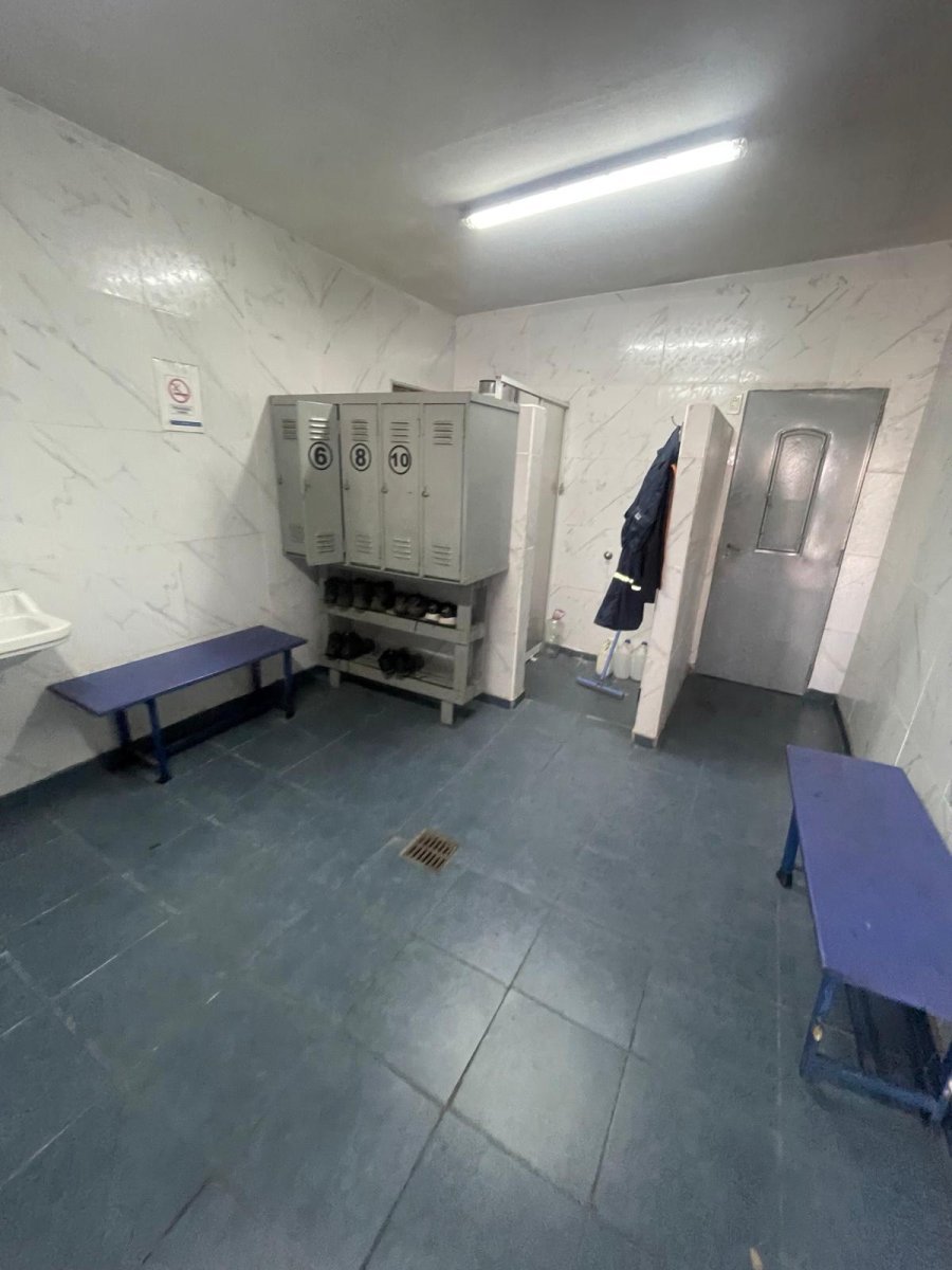 Nave con techo a dos aguas de chapa, piso de hormigón en muy buen estado, vestuarios, Altura máxima 8,3 m y portón de acceso con altura 4,86 m. Cuenta con oficina y vestuarios.