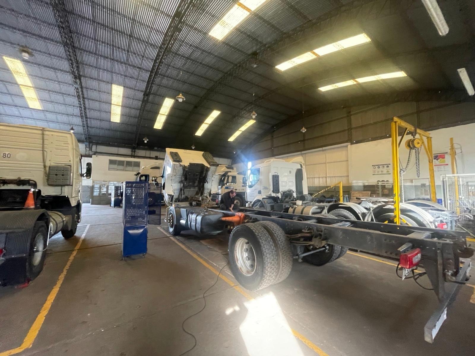 Nave de estructura sólida, con techo parabólico, altura máxima 10 m, energía trifásica y chapas traslúcidas con iluminación natural. Cuenta con oficinas.