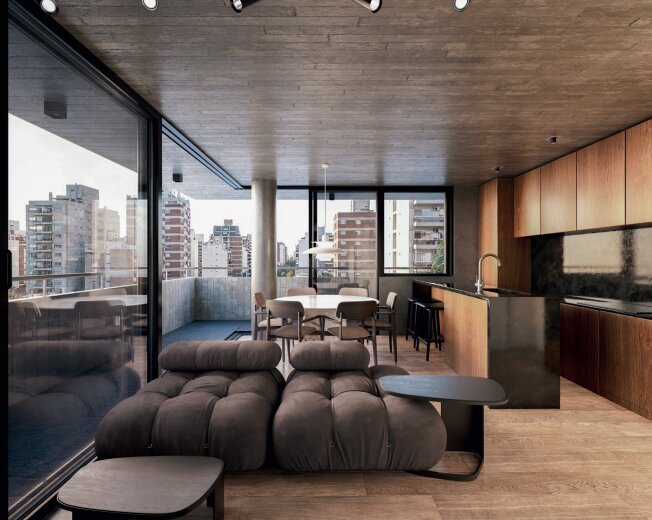 La unidad ubicada en la esquina potencia estas cualidades, incorpora una barra desayunador separan-