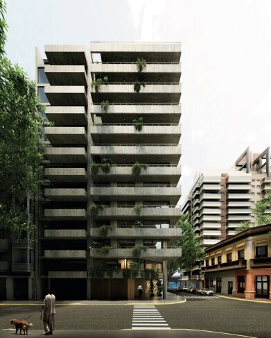 Los balcones, con presencia de vegetación, amplían el espacio interior y construyen una relación direc-