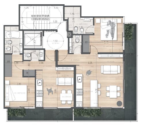 Cuentan con un amplio espacio de living-comedor con cocina integrada, generando un ambiente continuo y flexible para el uso cotidiano. Se incorpora un toilette para uso diario y de invitados, y un dormitorio con baño en suite que garantiza confort e independencia.